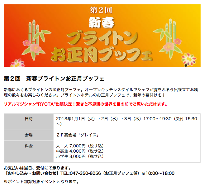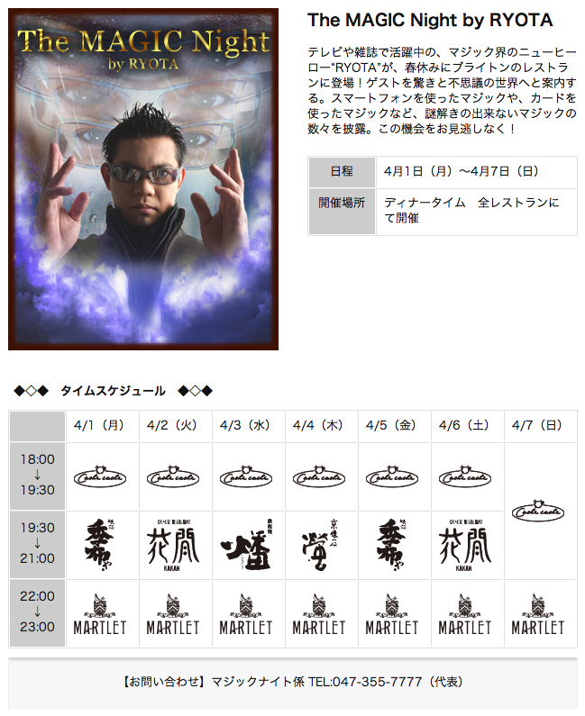 今年も浦安ブライトンホテルの「マジックナイト」が開催されます。