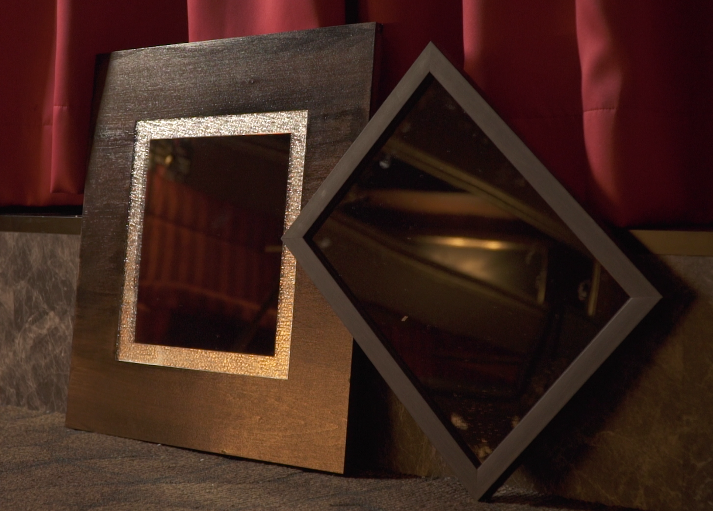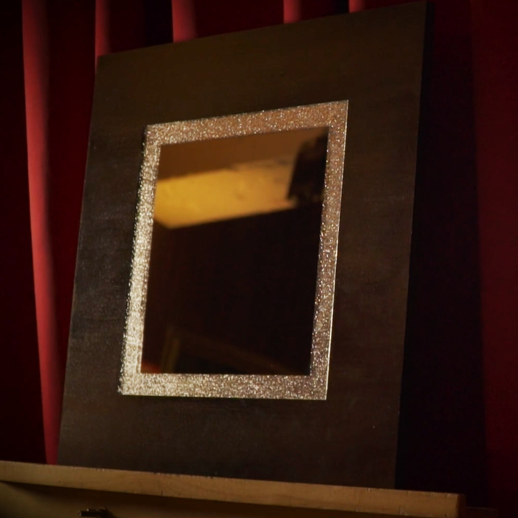 ・見た目は全く普通の鏡に絵柄が写ります。安全のためアクリルの鏡を使用していますが、反射率はガラスの鏡とほとんど変わりません。